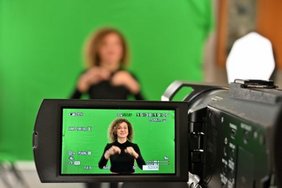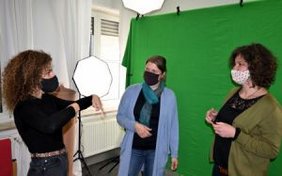 Gemeinsam mit Herrn Rinke (RinkeTV) haben wir am 06.11.20 unseren Seminarraum zum Aufnahmestudio umgestaltet. Für unser Projekt konnten wir die gehörlose Dozentin Lemonia Rose (a.mao) gewinnen, die gemeinsam mit ihrem Mann die Texte für uns bearbeitet, übersetzt und gebärdet hat. In toller Zusammenarbeit konnten wir die Inhalte unserer Homepage mit allen Fachbereichen im ZfG in Deutscher Gebärdensprache aufnehmen. Nun werden die DGS Videos noch geschnitten und bearbeitet – schon bald werden sie hier auf der Homepage zu sehen sein.